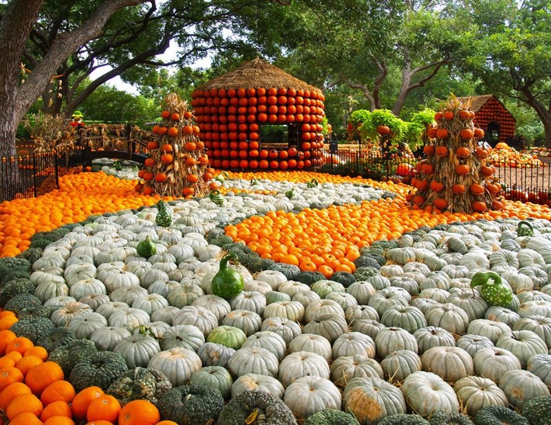For the 14th year, Autumn at the Arboretum, presented by Rogers-O'Brien, highlights the nationally acclaimed Pumpkin Village featuring pumpkin houses and creative displays utilizing more than 90,000 pumpkins, gourds and squash. Named one of "America's Best Pumpkin Festivals" by Fodor's Travel, the Dallas Arboretum's fall festival opens on September 21 and runs through October 31. Throughout the 66-acre garden, the breathtaking colors of fall include 150,000 autumn flowers accented by more than 50 varieties of pumpkins, gourds and squash.